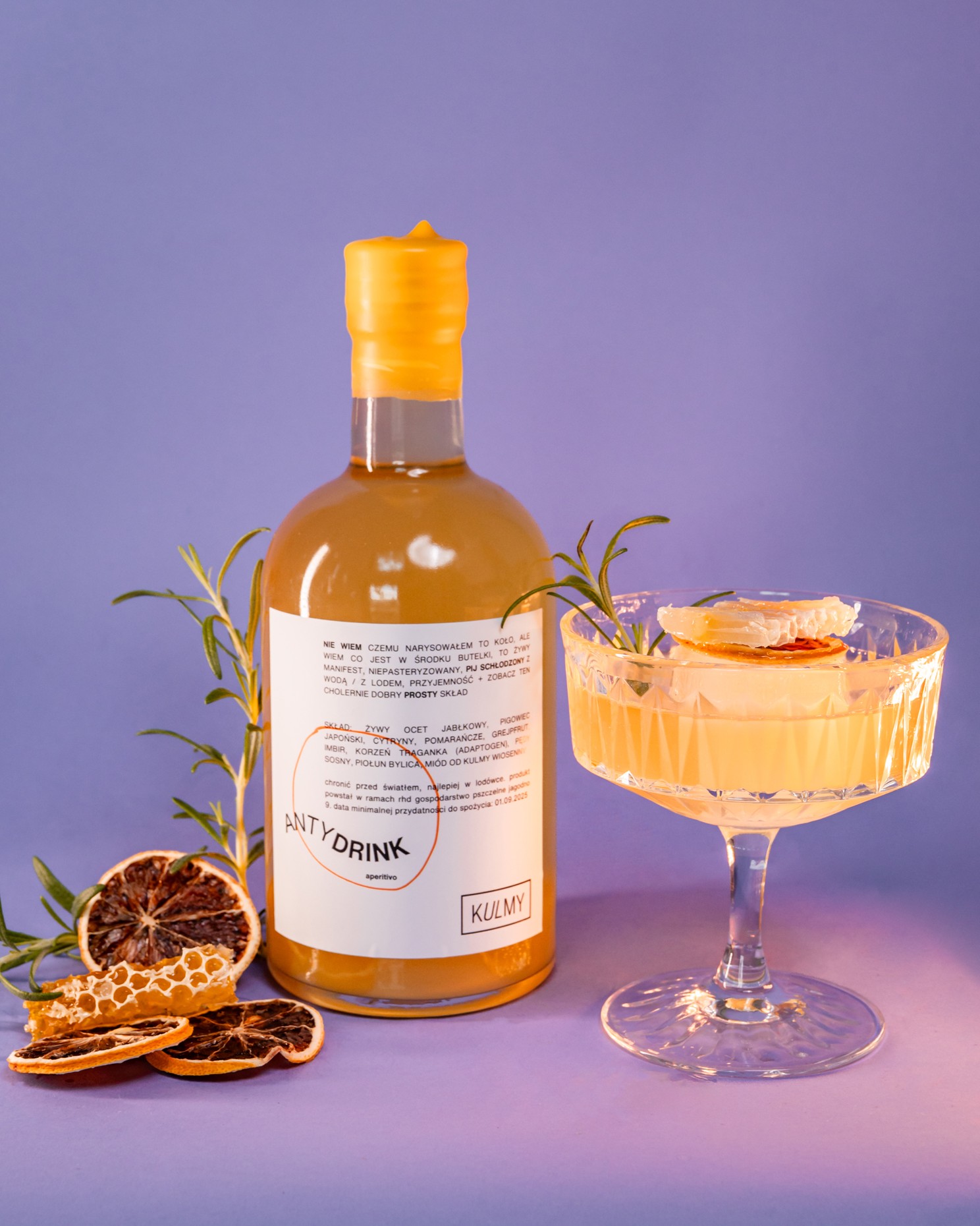 Zawsze wtedy, kiedy potrzebujesz orzeźwienia, naturalnych składników albo po prostu czegoś, co dobrze smakuje i zostaje z Tobą na dłużej. Ten napój łączy w sobie to, co lekkie i owocowe — jak pigwowiec, cytryna, pomarańcza czy grejpfrut — z tym, co ziołowe i bardziej „uziemiające”: tragankiem, imbirem, piołunem czy pędami sosny. Każdy z tych składników znalazł się tu nie bez powodu – dobraliśmy je tak, by razem tworzyły smak, który z jednej strony ma moc, z drugiej pozwala pić Antydrink bez pośpiechu. To smak lata w wersji lekkiej, nieprzesłodzonej i niebanalnej. Taki, który po prostu dobrze mieć pod ręką.