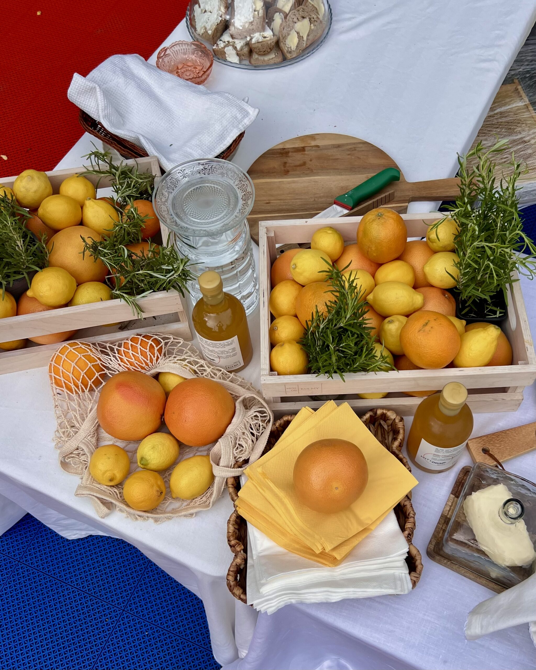 * Napój na bazie żywego octu jabłkowego, z owocem pigwowca japońskiego, cytryną, pomarańczami, grejpfrutem, imbirem, korzeniem traganka, pędami sosny, piołunem, rozmarynem i wiosennym miodem od Kulmy.