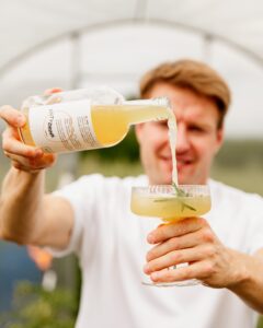 Wszystko zaczęło się od tego, że postanowiliśmy poszukać smaków… NASZEGO lata. Takich, które będą zaskakiwać i pobudzać kubki smakowe nieoczywistymi połączeniami. Po próbach i smakach kilku wersji powstał on – napój na bazie octu jabłkowego, z pigwowcem japońskim, cytryną, pomarańczą i grejpfrutem. Dodaliśmy też imbir, piołun bylicę, rozmaryn, pędy sosny i korzeń traganka – dla ziołowego balansu i nuty dzikości. Kwaskowo-cytrusowy, orzeźwiający, z głębokim smakiem. Można go pić jako moctail, domowy izotonik albo po prostu dobry rytuał. Tak jak w przypadku wszystkich naszych produktów, napój jest fermentowany naturalnie i bez pośpiechu, z poszanowaniem tradycji oraz wykorzystaniem lokalnych składników. W tym wyjątkowego miodu wiosennego z naszych pasiek!