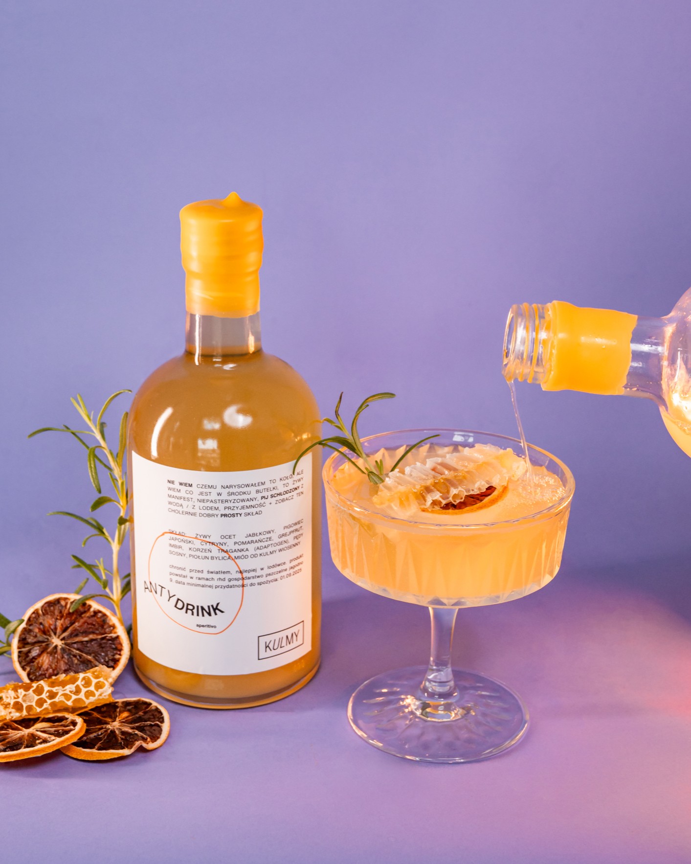 Zawsze wtedy, kiedy potrzebujesz orzeźwienia, naturalnych składników albo po prostu czegoś, co dobrze smakuje i zostaje z Tobą na dłużej. Ten napój łączy w sobie to, co lekkie i owocowe — jak pigwowiec, cytryna, pomarańcza czy grejpfrut — z tym, co ziołowe i bardziej „uziemiające”: tragankiem, imbirem, piołunem czy pędami sosny. Każdy z tych składników znalazł się tu nie bez powodu – dobraliśmy je tak, by razem tworzyły smak, który z jednej strony ma moc, z drugiej pozwala pić Antydrink bez pośpiechu. To smak lata w wersji lekkiej, nieprzesłodzonej i niebanalnej. Taki, który po prostu dobrze mieć pod ręką.