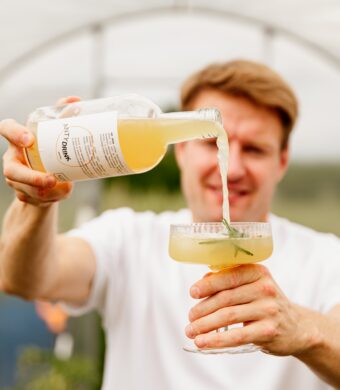 Zamiast cukru – miód. Zamiast sztucznych dodatków – lokalne składniki i naturalna fermentacja. W ten sposób zamiast wysokoprzetworzonego gazowanego napój otrzymujemy alternatywę – coś, co orzeźwia i smakuje. Pigwowiec daje tu owocową kwasowość, a traganek – ziołowy twist i nutę równowagi. Z kolei cytrusy – cytryna, pomarańcza i grejpfrut – dodają świeżości i lekkości, a imbir wnosi delikatną pikantność. Piołun i pędy sosny nadają całości wytrawny, ziołowy charakter, który świetnie przełamuje słodycz wiosennego miodu. To dzięki nim napój ma tak złożony smak i tak nietypowy, lekko „dziki” aromat.