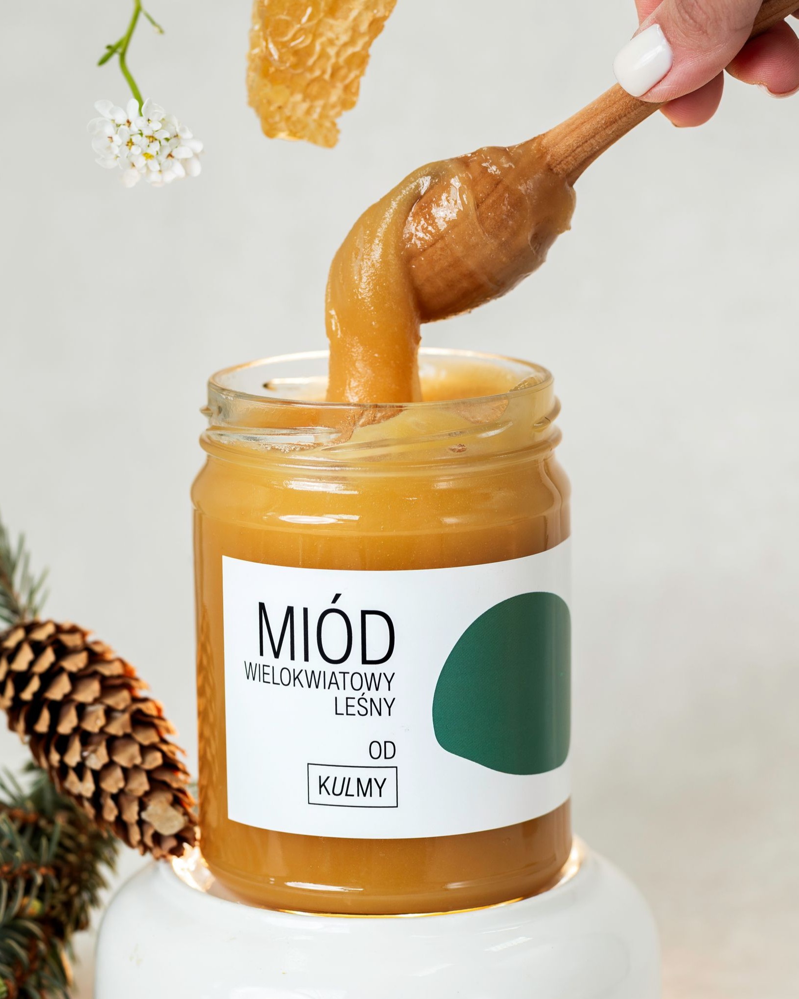 Miód leśny wybieramy z pasiek znajdujących się lokalnie, w urokliwych terenach bliskich nam. Nasz miód pachnie i smakuje… lasem. Po odkręceniu słoika od razu wyczujemy charakterystyczny, intensywny zapach przywodzący na myśl długie, piesze wędrówki pośród drzew iglastych i liściastych, obserwowanie leśnej przyrody, nasłuchiwanie pracującego dzięcioła, wypatrywanie rudej, wiewiórczej kity czy zbieranie leśnych skarbów — szyszek, owoców czy kwiatów.