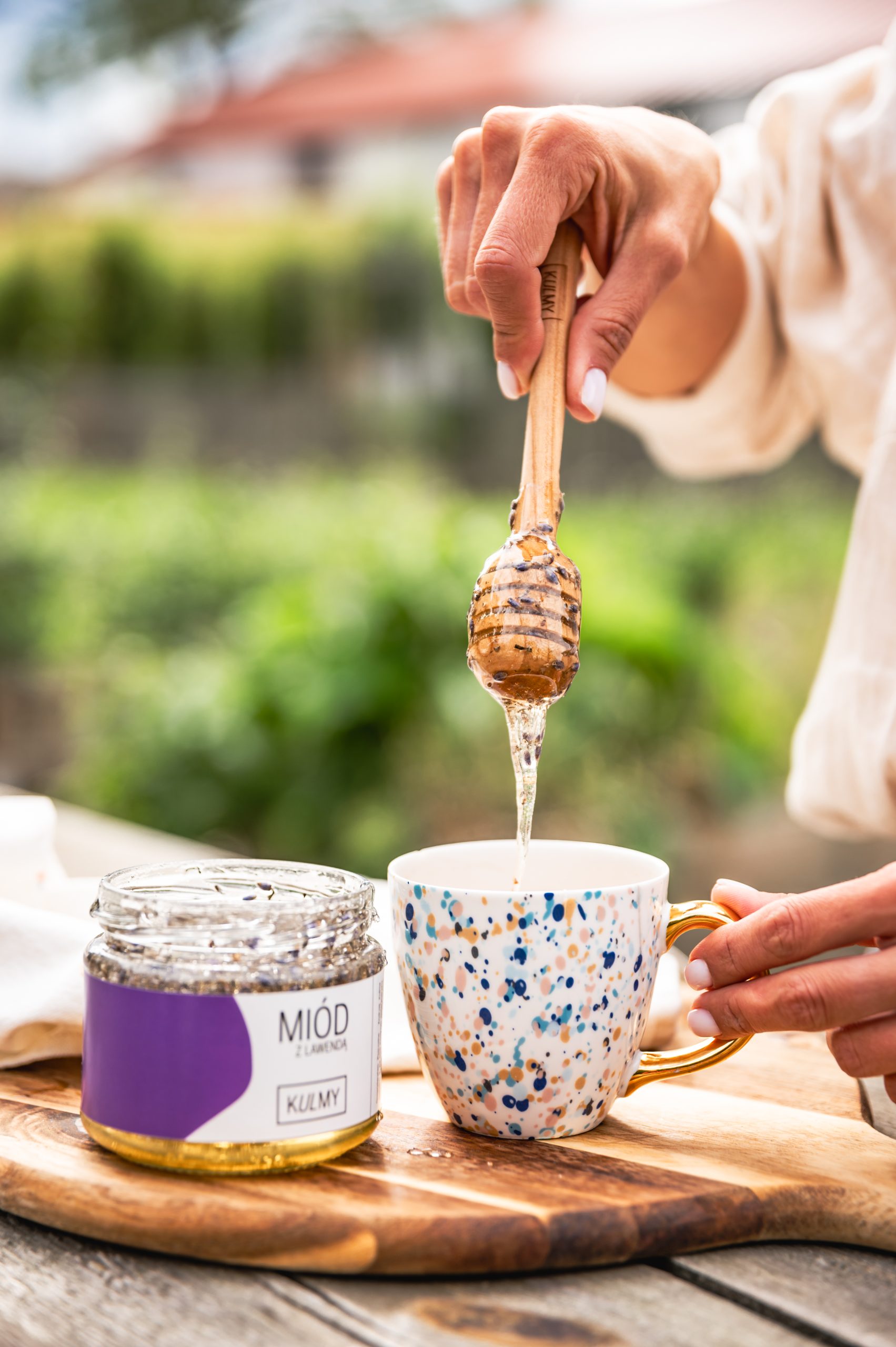 To połączenie złocistego miodu akacjowego z naszej pasieki i suszonej lawendy z lokalnych upraw, które zachwyca prostotą i wyglądem. Delikatny, słodki miód z lekko kwiatową nutą lawendy tworzy smak, który jest subtelny, harmonijny i bardzo przyjemny. Nie za intensywny, nie za słodki – wyważony w punkt!